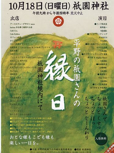 本日、9時から16時半まで、平野の祗園さんで縁日が行われます。 大人も子供も楽しめるものが目白押しですね。 今日もいい日でありますように。