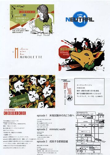 永田恵理さんの個展CHOICEが神戸住吉/御影にある飲食店三店舗で同時開催 されます。店舗によってテーマをきめた展示になります。 テーマは episode1 末端試験弁の向こう側へ episode2 mimietic world episode3 成長する壁銀狐編開催場所は以下のとお…