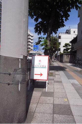 平日は大学の授業の予習・復習、レポート作成で忙しく、街の飲食店に寄れるのは土曜日だけになっています。今日は海辺のカフェ・クルクマへ。国道沿いに看板が出ています。この先が海に繋がっています。店主さんが育てている植物です。クルクマのママさんは…