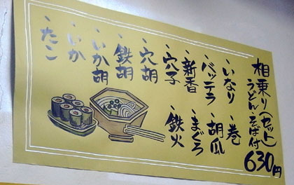 うどん又はそばに13種類の中から選べる寿司とのセットである。