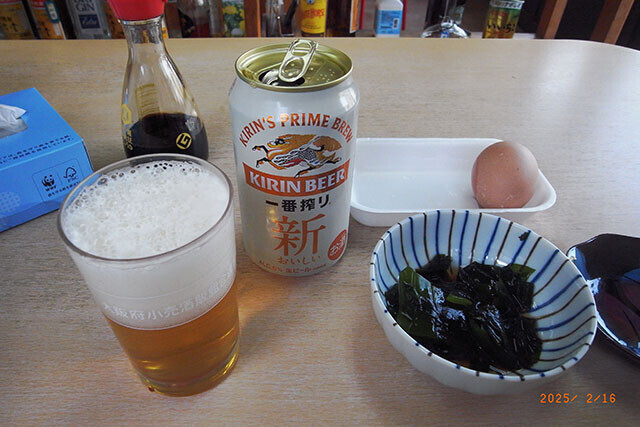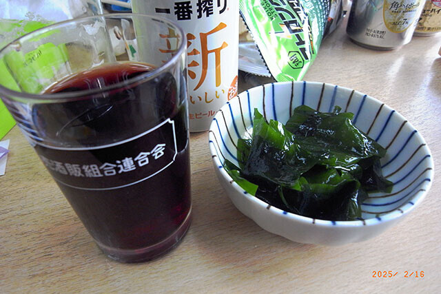須磨のワカメとゆで玉子は店の女将さんからのプレゼントです。